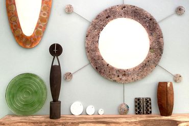 Bold pattern, rich imagery and tactile qualities are the hallmarks of this evolving selection of mirrors