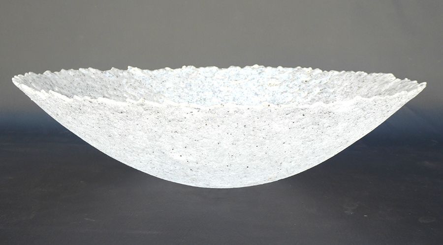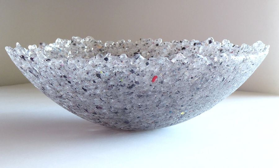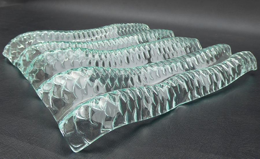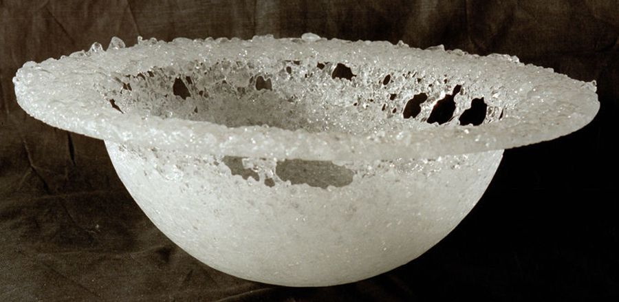 Kiln slumped clear glass vessel; concertinaed in form